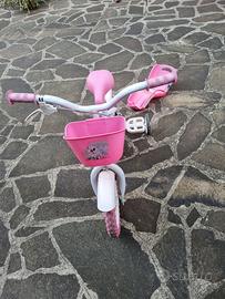 vendo bici con rotelle per bambina. usata dai 3 ai 5 anni. gli ultimi mesi abbiamo tolto il portaoggetti dietro ma si può tranquillamente rimontare. nessun difetto.