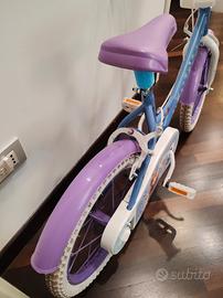 • bicicletta bambina in metallo con cestino, ruota diametro 16 pollici, tema frozen, colore azzurro, viola, bianca, prodotta in Italia. Ideale per età 3-6anni.