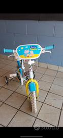 Con salita in sella bassa, questa bici con rotelle permette ai bambini di imparare a pedalare al proprio ritmo. Provvista di carter catena e parafango, per evitare di avere sfregamenti e sporcarsi. La sua sella regolabile è molto comoda e può essere regolata man mano che il piccolo/a cresce.Come accessori, include un cestino portaoggetti posteriore .Le ruote da allenamento gli conferiscono la stabilità di cui ha bisogno per la sua prima bici e sono rimovibile al bisogno. Misura delle ruote 12 pollici. In ottime condizioni.