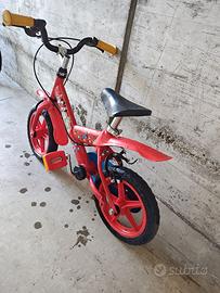 Bicicletta misura 12' adatta per i bambini che vogliono imparare a pedalare in tutta sicurezza grazie alle rotelline stabilizzatrici laterali incluse • Gomme in E.V.A • Freno anteriore e posteriore • Parafanghi