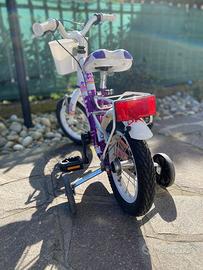 Bicicletta da bambina, ruota da 12 pollici, con rotelline per imparare a pedalare.