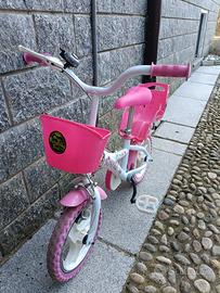 Bici in ordine, funzionante. Cestino anteriore e porta bambole posteriore. Rotelle incluse per le prime avventure...