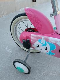vendesi bici da bimba decathlon btwin con grafica unicorno, ruote 14, perfettamente funzionante, in buone condizioni generali, ritiro a mano a Roma in zona Tiburtina casal bertone