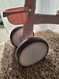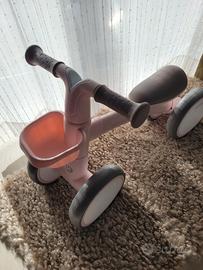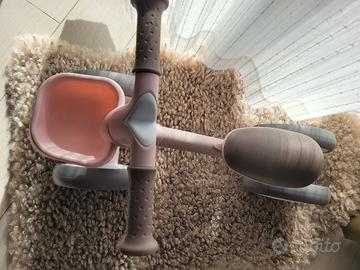Gioco adatto per bambini da 1 a 3 anni. La bici da apprendimento sviluppa il senso dell’equilibrio e della coordinazione del bambino; perfetto come cavalcabile sia indoor che outdoor. Telaio in alluminio leggero e di alta qualità; sedile regolabile in avanti e all’indietro; movimento limitato del manubrio; cestino estraibile; maniglie antiscivolo; sella morbida e confortevole con bordi arrotondati; Ruote in EVA morbide e silenziose. DIMENSIONI: 58x27x38.5 cm. PESO: 2 kg.