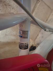 Bici bimba con disegno unicorno, raggio 16, dotata di rotelle.