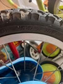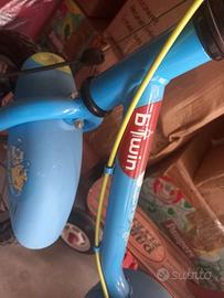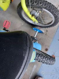 vendo bici bimbo età 3 -6 anni , marca Btwin con rotelle (che si possono togliere). la bici è in ottimo stato ha solo un piccolo taglio sul sellino come da foto. freni funzionanti. raggio 14''
