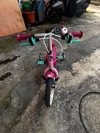 Bici da bambina con ruotine color rosa con unicorni. Vendo per passaggio a bici più grande, usata poco con campanellino e doppio fanalino
