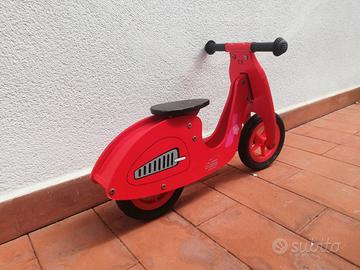 Un'alternativa al triciclo, su questa bici giocattolo senza pedali i bambini fanno i primi prudenti passi nella mobilità indipendente.