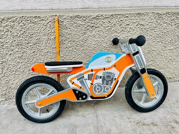 Bicicletta Sevi (Trudi) modello motocicletta Orange. Realizzata in legno, solida e sicura Ideale per imparare gradualmentea stare in equilibrio Ruote sterzanti e sellino regolabile in altezza Sviluppato nel rispetto delle più severe norme di sicurezza, vernici atossiche e resistenti Disegnata e realizzata in Italia. Altezza sella 35cm cone da foto.