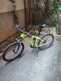 Bici MTB 24 perfettamente funzionante Modello “RockRider”. Ruote 24 pollici, cambio 3x6 velocità, forcella ammortizzata, con protezione cambio, dotata di cavalletto e campanello. Per bambini 09-12 anni. Usata pochissimo, gomme in perfetto stato. Prezzo del nuovo oltre 240 euro.