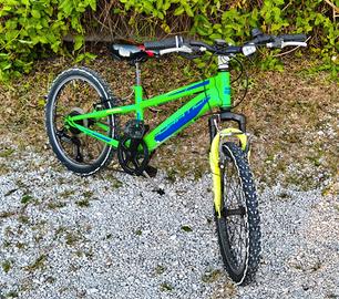 Vendo bicicletta Adriatica modello Rock con ruote da 20 pollici, ideale per bambini dai 6 ai 9 anni circa. Il mezzo è stato regolarmente mantenuto e si presenta in ottime condizioni funzionali ed estetiche. Specifiche tecniche: Telaio: Alluminio leggero (colore Verde/Blu). Cambio: Shimano a 6 rapporti con comando rotativo. Sospensioni: Forcella anteriore ammortizzata. Componenti: Freni V-Brake, cavalletto e pneumatici in buono stato.