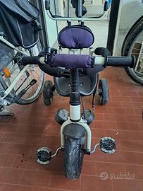 Bici-passeggino per bimbi. Seduta con cinture di sicurezza. Pedali. Poggiamani per utilizzarlo come passeggino. (25€)