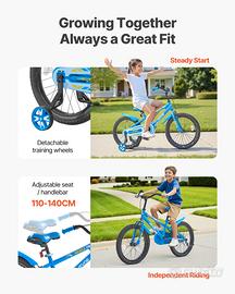Sedile ergonomico regolabile: l'altezza del sedile si regola facilmente tramite bulloni (per bambini da 110 a 140 cm). Il morbido materiale PU traspirante e il design ergonomico garantiscono una guida confortevole e senza fatica. Completo di manubrio regolabile