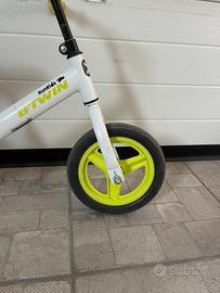 Bici leggera senza pedali e senza freni, per abituare il bambino a stare in equilibrio e passare con più facilità alla bici con pedali. Ha sella e manubrio regolabili, telaio in acciaio, ruote 10" con copertoni antiforatura pieni in schiuma. Indicata per i bambini da 2 a 4 anni (85-100cm)