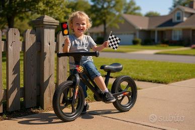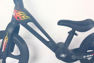 Vendo bicicletta senza pedali per bambini B-Bike RGX SpeedFire, ideale per aiutare i più piccoli a sviluppare equilibrio, coordinazione e sicurezza prima di passare alla bici con pedali. Adatta a bambini dai 2 ai 5 anni circa, con portata massima 35 kg. Caratteristiche principali: telaio leggero e resistente in nylon rinforzato sistema pieghevole Click&Fold per trasporto e poco ingombro ruote da 12 pollici antiforatura in gomma poliuretanica adatta sia per interni che per esterni poggiapiedi integrato nel telaio manubrio ergonomico antiscivolo sterzo flessibile a 360° bordi arrotondati per una maggiore sicurezza conforme alla normativa europea EN 71 Grafica SpeedFire con design sportivo effetto fiamma rosso/arancio. Ottima per accompagnare il bambino nelle prime fasi di apprendimento dell’equilibrio e del movimento.