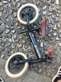Bici Senza Pedali Run Ride 520 Cruiser 10" B'Twin Decathlon Bici leggera senza pedali, con sella e manubrio regolabili per crescere con il bambino. Con freni a tamburo, da impugnare facilmente grazie al sistema Stop Easy, che permettono una fermata progressiva e dolce. Ha il telaio in acciaio, ruote 10" con copertoni bianchi pieni in schiuma, sella e impugnature colorate. Indicata per i bambini da 2 a 4 anni (85-100 cm).