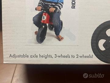 Possibilità di trasformarsi da triciclo a bici senza pedali in pochi istanti.