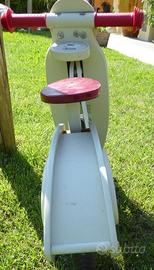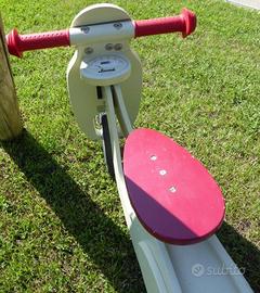 Vendo Bici senza pedali, la balance bike Scooter è un bellissimo giocattolo in legno adatto ai bambini dai 3 ai 6 anni. L'altezza del manubrio della bicicletta è di 51 cm, l'altezza del sedile può essere comodamente regolata a 32-36,5 cm e la sua lunghezza totale è di 77 cm. Le ruote gonfiabili garantiscono una guida fluida e confortevole poiché si adattano a diverse superfici. La balance bike in legno ha un bel design color menta in stile retrò, che è molto attraente al giorno d'oggi e nessun bambino potrà resistervi. Nella parte anteriore ha il faro finto e contagiri. La massiccia struttura in legno di alta qualità garantisce la protezione, ma anche gioia e divertimento per tutti i bambini quando guida una bicicletta senza pedali Janod. È un intramontabile giocattolo in legno che piacerà a diverse generazioni, realizzato con legno di qualità e verniciato con vernici sicure. Made in Francia