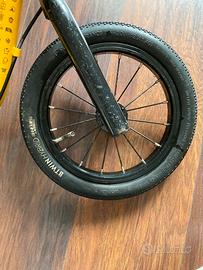 Telaio in alluminio e ruote 12" con veri copertoni, per fare escursioni in famiglia più impegnative. La bici senza pedali Runride 900 pesa 3,6 Kg. Età consigliata da 2-5 anni.
