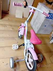 Vendo bicicletta per bambina con pneumatici da 10 con una comoda sella e stabilizzatori rimovibili e smontabili. Ideale per bambini dai 2 anni in su.