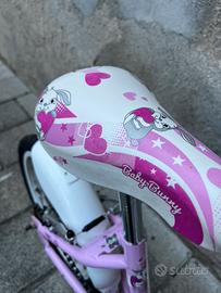Bicicletta 14” Baby Bunny per bambina con cestino. Leggera, maneggevole, Made in Italy. Ottima per iniziare a pedalare. Alcuni segni d’uso, ma complessivamente in buone condizioni!