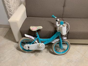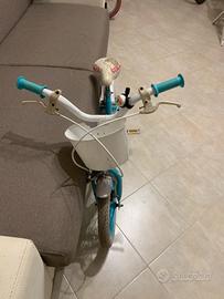 Bicicletta verde acqua con cestino anteriore e posteriore e rotelle ruota 14 elsa e anna prezzo regalo 40€ Per bambini dai 3 anni ai 7 anni Leonardo 3806335920