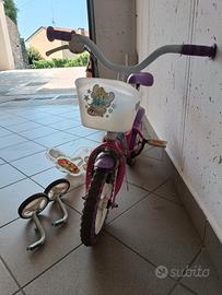Bicicletta delle Winx con rotelle da poter mettere o togliere, cestino frontale e accessorio seggiolino posteriore per le bambole. Gomme piene, freno anteriore, rapporto a unica velocità, sella e manubrio regolabili. Casco da bicicletta.