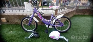 Bicicletta bambina Record viola bianca e fucsia in ottime condizioni usata pochissimo viola dotata di cestino anteriore e posteriore e di rotelline per le prime esperienze raggio 14