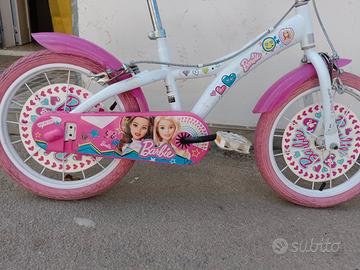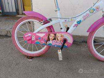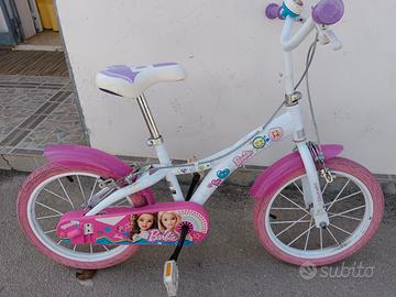 Bicicletta bambina tema Barbie completa di cestino anteriore e posteriore (quest'ultimo è un porta bambola)