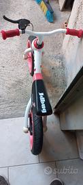 Bici senza pedali bianca e rossa usata poco in ottimo stato con telaio in alluminio,ruote da 12" cerchi in plastica rotazione su cuscinetti e freno posteriore.