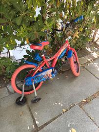 Bicicletta per bambino di Spiderman utilizzabile dai quattro ai sei anni circa. Disponibile con rotelle.