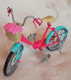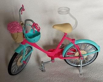 Bicicletta di Barbie completa di caschetto, cestino con fiori e supporto per Barbie. In ottime condizioni