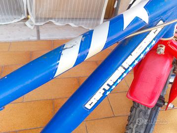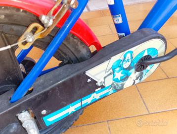 Bicicletta perfettamente funzionante con ruote,catena e freni perfetti. Corredata di rotelle. A tema Capitan America