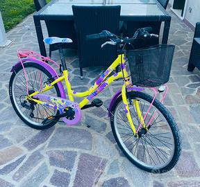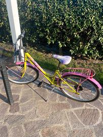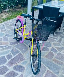 usata pochissimo, bicicletta da ragazzina colorata giallo e rosa modello city completa di cestino 24 pollici cambio shimano con marce