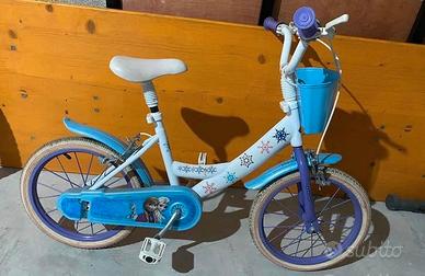 Bicicletta bimba frozen..usata poco e in ottimo stato..comprensiva di rotelle. Misura 16 pollici
