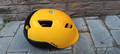 Bicicletta BTWIN senza pedali. Adatta a bambine e bambini tra gli 85 e i 105 cm. Si vende com caschetto giallo.