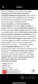 Bici pedagogica 1-5 anni, si usa da subito a 3 ruote e poi si puo’ modificare in 2 ruote in 2 configurazioni differenti, man mano che l’altedda del bimbo cresce. Limited edition recycled, ottima per imparare l’equilibrio, condizioni ottime