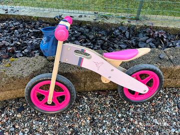 Vendo bicicletta per bambina in legno con disegno di origami. Vendo per fine utilizzo. Usato bene, buone condizioni.