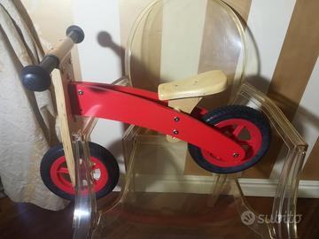 BICICLETTA SENZA PEDALI IN LEGNO NATURALE E ROSSO MINI BIKE PINOLINO