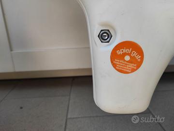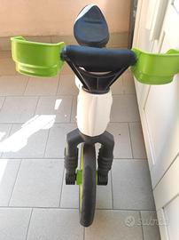 Bicicletta senza pedali con struttura in plastica rinforzata, leggerissima.