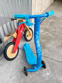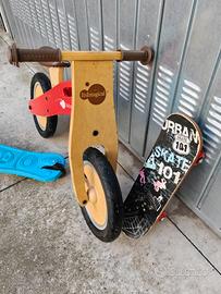 Bicicletta senza pedali, skateboard e Monopattino a 3 ruote con freno con doppio comando e luci interne alle ruote funzionanti. PREZZO VENDITA DI TUTTO ASSIEME