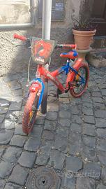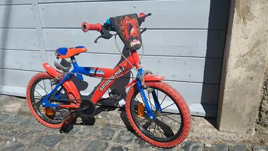 Biciletta Spiderman 16 pollici dai 4 ai 6 anni in ottimo stato, freni funzionanti, sellino regolabile, ha però una gomma forata che va sostituita. Viene comunque fornito un copertone nuovo per la sostituzione (non è stato fatto per passaggio a bicicletta più grande).