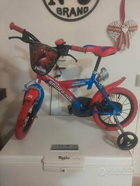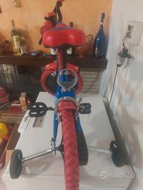 Bicicletta spiderman con cerchi da 14. La bicicletta è completa di rotelle le condizioni sono molto buone
