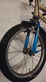 Bici stile vintage, robusta e completamente funzionante. ✔ Ruote 16” ✔ Telaio resistente ✔ Freni funzionanti ✔ Parafanghi anteriori e posteriori ✔ Cavalletto ✔ Portapacchi posteriore Condizioni: usata, presenta segni del tempo e qualche punto di ruggine (vedi foto), ma perfettamente utilizzabile. Ideale per bambini o come base per restauro / progetto vintage. 📍 Ritiro a mano preferito