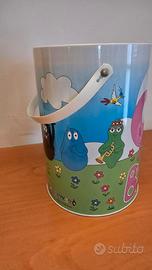 Bidoncino in latta con bellissimo disegno dei barbapapa.