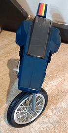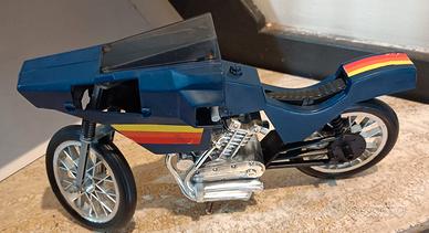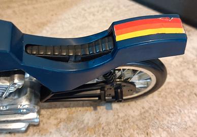 Rara Moto Commando (Commando Cycle) originale della linea Big Jim Mattel, serie Spy, risalente ai primi anni '80. Il pezzo è in ottime condizioni generali nonostante il suo vissuto e normali segni del tempo. Ideale per integrare una collezione vintage o per un progetto di restauro conservativo. Punti di forza: Cupolino trasparente incluso: Presente e integro (pezzo rarissimo da trovare singolarmente). Cavalletto originale: Perfettamente funzionante. Cromature brillanti: Il blocco motore cromato è ben conservato e lucido. Decalcomanie: Strisce colorate originali ancora ben visibili. Un pezzo di storia dei giocattoli anni '80 che non può mancare nella bacheca di un appassionato di Big Jim.