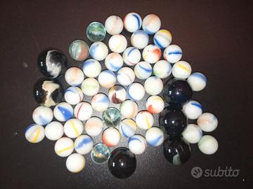 🪙Vendo 57 (56 in foto + 1 trovata dopo) biglie di vetro di dimensioni e colore diverso.