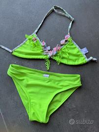 🔸 Modello 2: bikini verde fluo decorato con applicazioni floreali e foglioline in rilievo, super originale e allegro!
