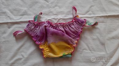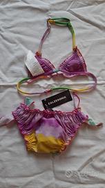 Nuovo con cartellino e quindi mai indossato. Bikini da bambina multicolore (lilla verde giallo). Tessuto esterno 82% poliammide 18% elastan, fodera 90% poliestere 10% elastan. Taglia 4 anni. Marca Calzedonia