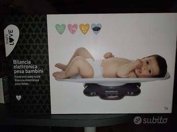 Bilancia pesa bambini ancora nella sua scatola originale. Usata solo un paio di volte. Si possono pesare bambini fino ad un massimo di 50 kg. Schermo LCD con anche indicatore batteria.